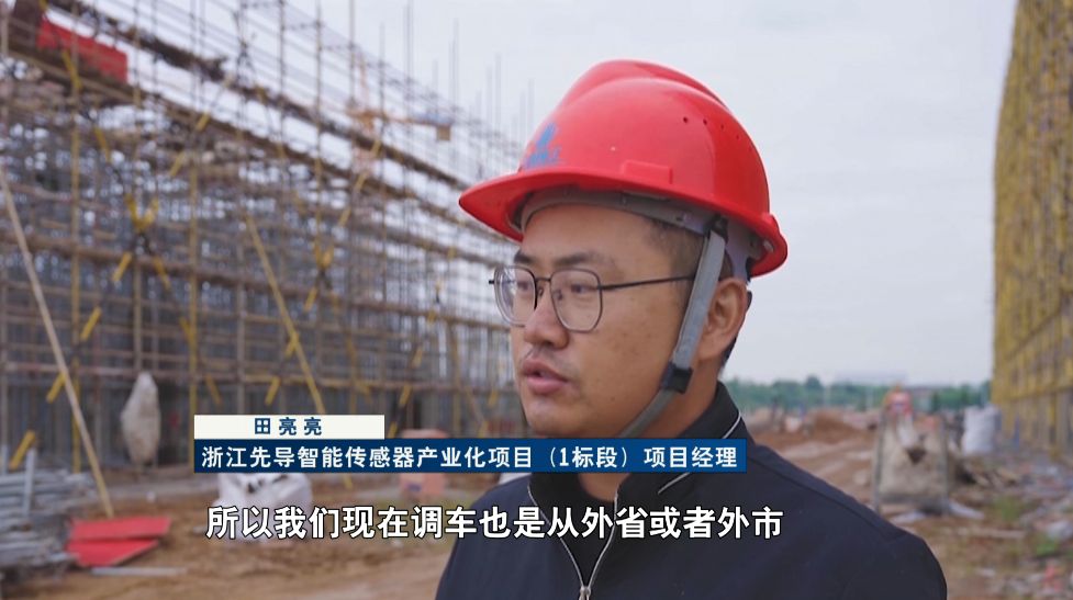 浙江先导智能传感器产业化项目(1标段)项目经理 田亮亮:我们这个项目四周,你看旁边也有好多工地在开工,他们也要机械车辆,所以我们现在调车也是从外省或者外市。