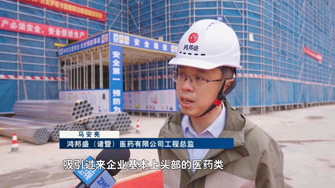 鸿邦盛(诸暨)医药有限公司工程总监 马安亮:整个建业路区块,吸引过来企业基本上是头部的医药类,或者是科技类,代表各个细分领域尖端的科技。