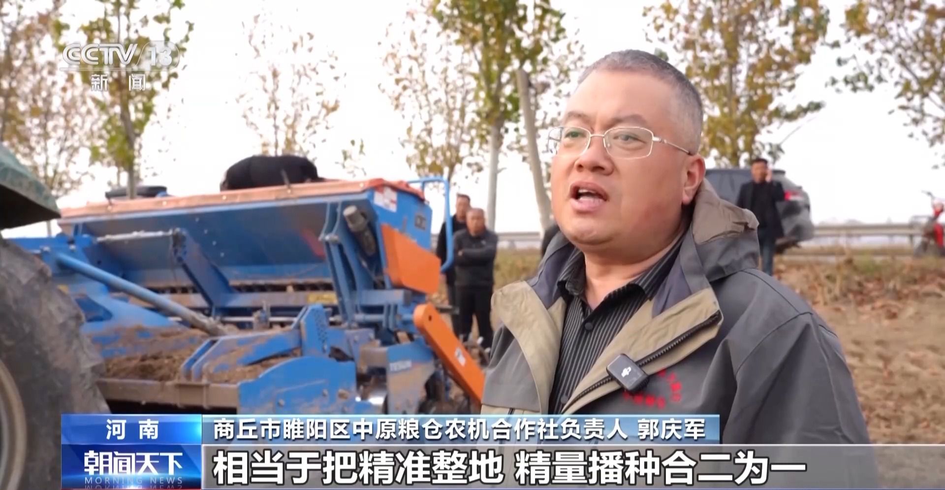 商丘市睢阳区中原粮仓农机合作社负责人 郭庆军:相当于把精细整地、精量播种合二为一,抢抓农时确保一播全苗,利于晚播麦培育壮苗。预计一周左右完成2万亩小麦的播种。