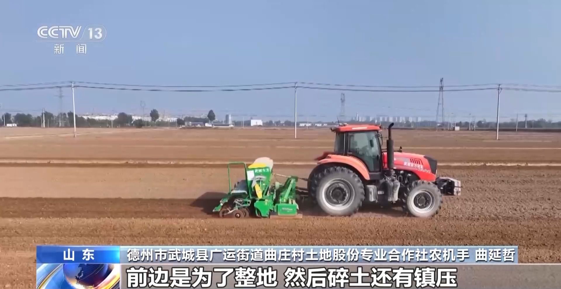 德州市武城县广运街道曲庄村土地股份专业合作社农机手 曲延哲:前边是为了整地、碎土还有镇压,中间这个辊是镇压的,用种量每亩地30斤,今年播种比较晚,深度相对来说比往年要浅一点,掌握2到3公分,这样容易出苗。