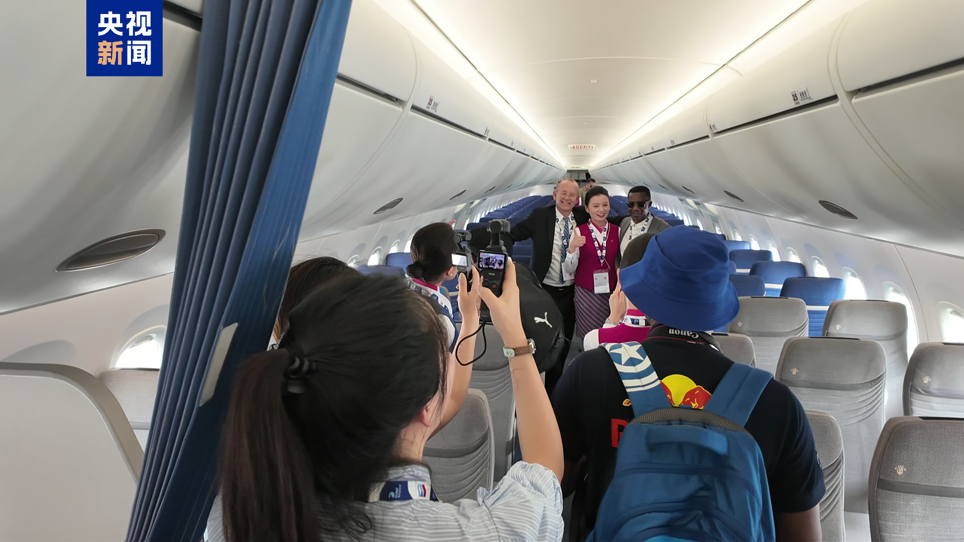中国航空工业的参展表现成为本届航展的一大亮点,实现民用与军用装备协同亮相。2架C919飞机与1架C909公务机“组团”亮相,实现国产大飞机C919在中东地区的首次展示,具有重要意义。中国南方航空参展的这架C919飞机采用164座三舱布局,内饰采用最新的“国风清雅、沐光而行”东方美学设计主题,为中东观众展示了新一代客舱内饰设计,凸显出极致东方美学,同时也为旅客带来更加舒适的航空出行体验。航展第一天,C919的参观者热情高涨,大批展商、媒体人和专业观众排起长队,等候登机参观。现场除了在客舱体验外,观众还可进入驾驶舱内与飞行员面对面交流。