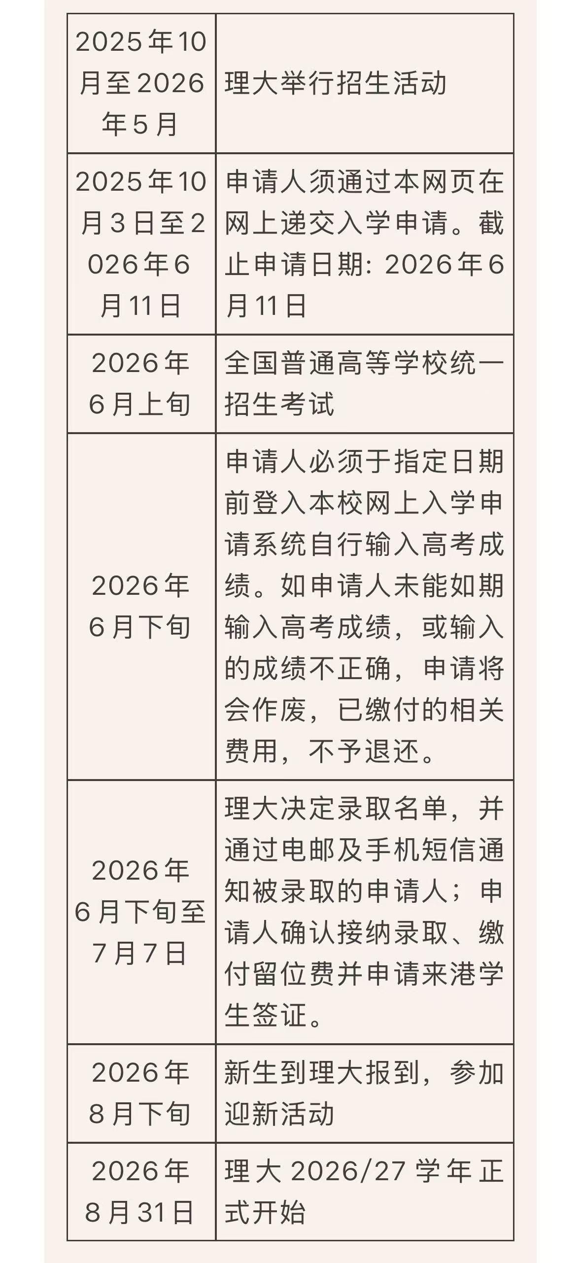 香港理工大学实行自主招生,不影响学生报考内地高校。根据教育部与香港特别行政区教育局的协议,内地31个省区市的学生均可申请来港就读。各省区市并没有固定的名额分配。申请截止日期为2026年6月11日 。