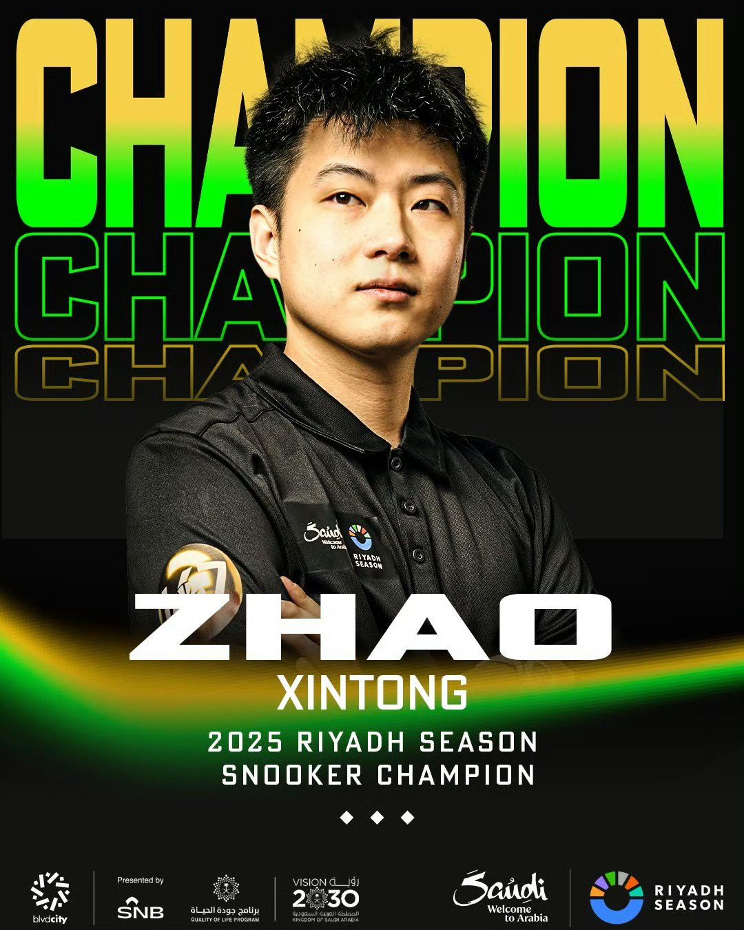 当地时间11月21日,在2025利雅得赛季斯诺克锦标赛决赛中,中国球员赵心童轰出两杆单杆破百连拿三局,以5-2战胜罗伯逊,赢得本赛季首冠。这也是赵心童世锦赛夺冠后再次捧杯。