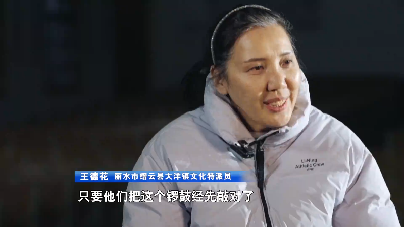 丽水市缙云县大洋镇文化特派员 王德花:我教你1234,你不会,我就教你右左右左。只要他们把这个锣鼓经先敲对了,敲得快慢就不管他了。你要是学点乐器,不会老年痴呆,这样的,他们就(说)好的,动手又动脑是吧 。你要求他们太高了,他们会怕的,不肯学的,能敲响比敲好更重要。