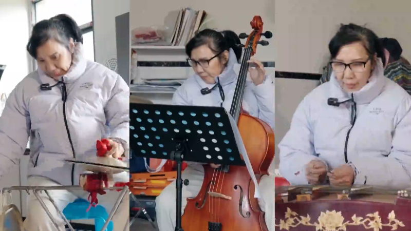 59岁的王德花,是缙云县城一家工厂的食堂阿姨,灶台前,她能烧出各式美味的家常菜,灶台外,她也能玩转各式乐器,在乡村婺剧演出的乐队里,是实打实的“C位人物”。