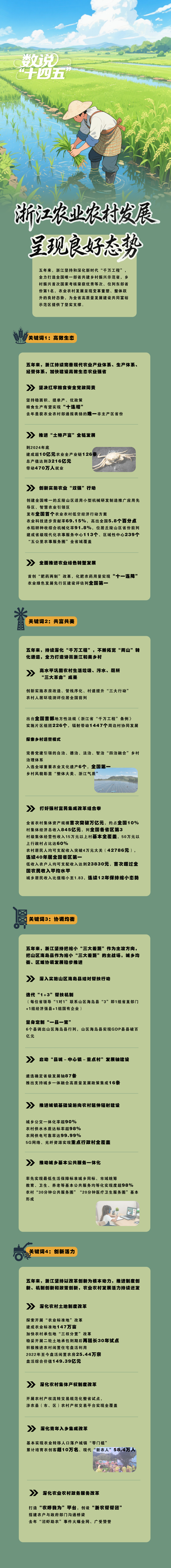 11月26日上午,浙江省政府新闻办举行“浙江省高质量完成‘十四五’规划”系列主题第九场新闻发布会,介绍“十四五”时期浙江推进农业农村现代化、加快城乡融合发展情况。“十四五”以来,浙江坚持和深化新时代“千万工程”,全力打造全国唯一部省共建乡村振兴示范省,为全省高质量发展建设共同富裕示范区提供了坚实支撑。一起来看这五年来浙江农业农村发展成绩单。
