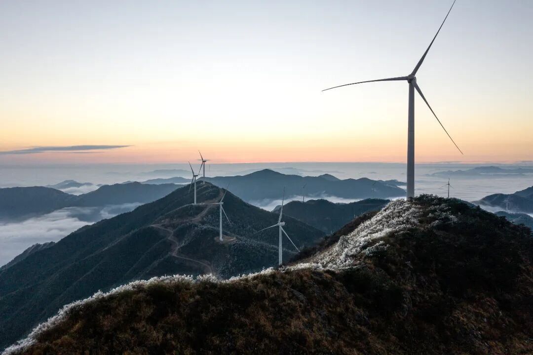 位于丽水白鹤尖的华能云和黄源风电场。图源 视觉中国