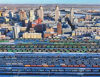 图为12月10日,中欧班列在满洲里站整装待发。黄 旭摄(新华社发)