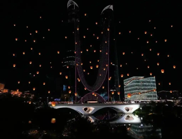 而在杭州奥体中心,400余架无人机孔明灯点亮夜空,桥上新年大集汇聚60余家健康有机餐饮品牌,马路米其林市集让市民一站式品尝地道风味,8米高灯塔跨年倒数更是将氛围推向顶点,科技感与烟火气在此交融共生。