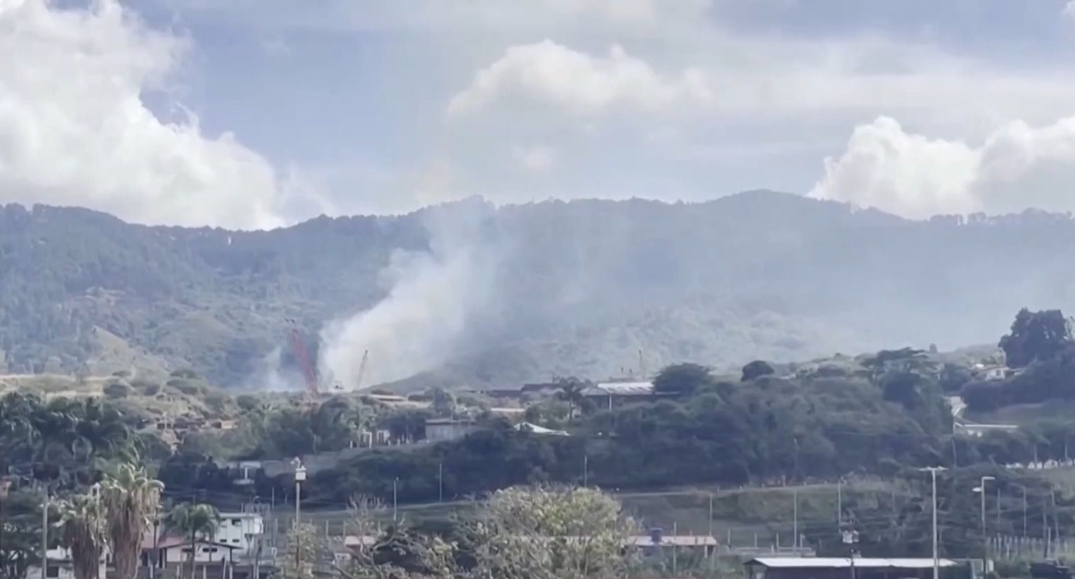 3日,委内瑞拉加拉加斯南郊一军事基地遭袭后冒出浓烟
