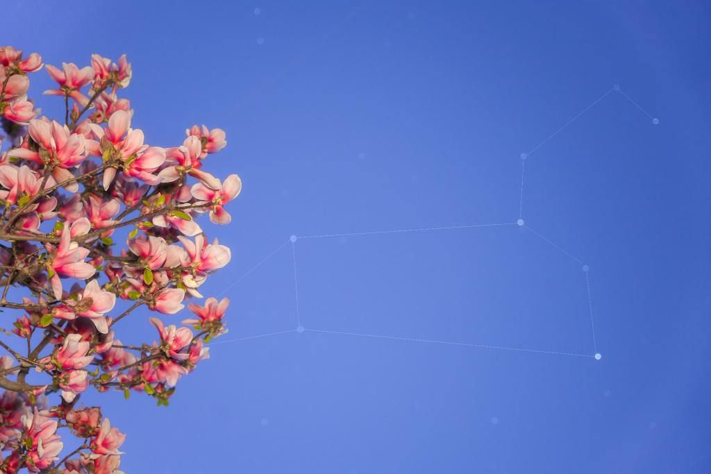 2025年3月27日,在北京丰台拍摄的玉兰花与狮子座“同框”。