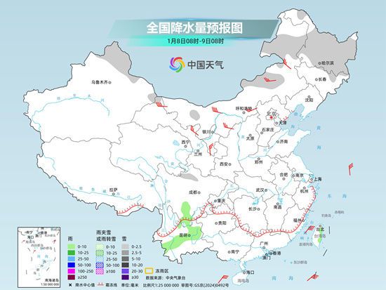 昨天,我国大部雨雪稀少,东北地区出现分散性弱降水。监测显示,7日8时至8日6时,黑龙江中东部、吉林中东部等地出现小到中雪或雨夹雪。