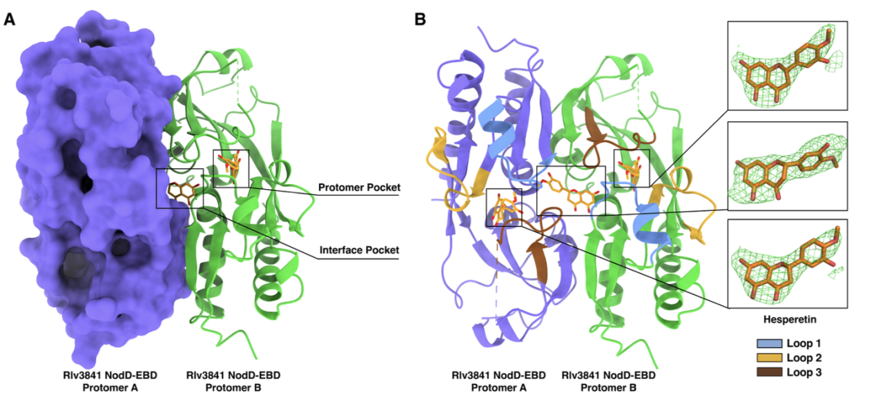 豌豆根瘤菌NodD蛋白与橙皮素复合物的结构示意图