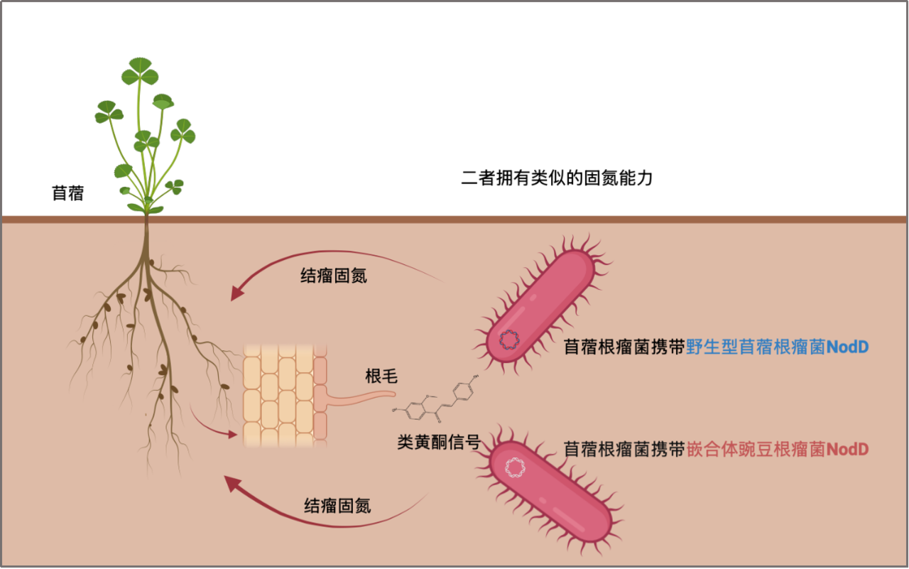嵌合体NodD能够互补苜蓿根瘤菌NodD突变体,恢复其在苜蓿上的固氮结瘤能力