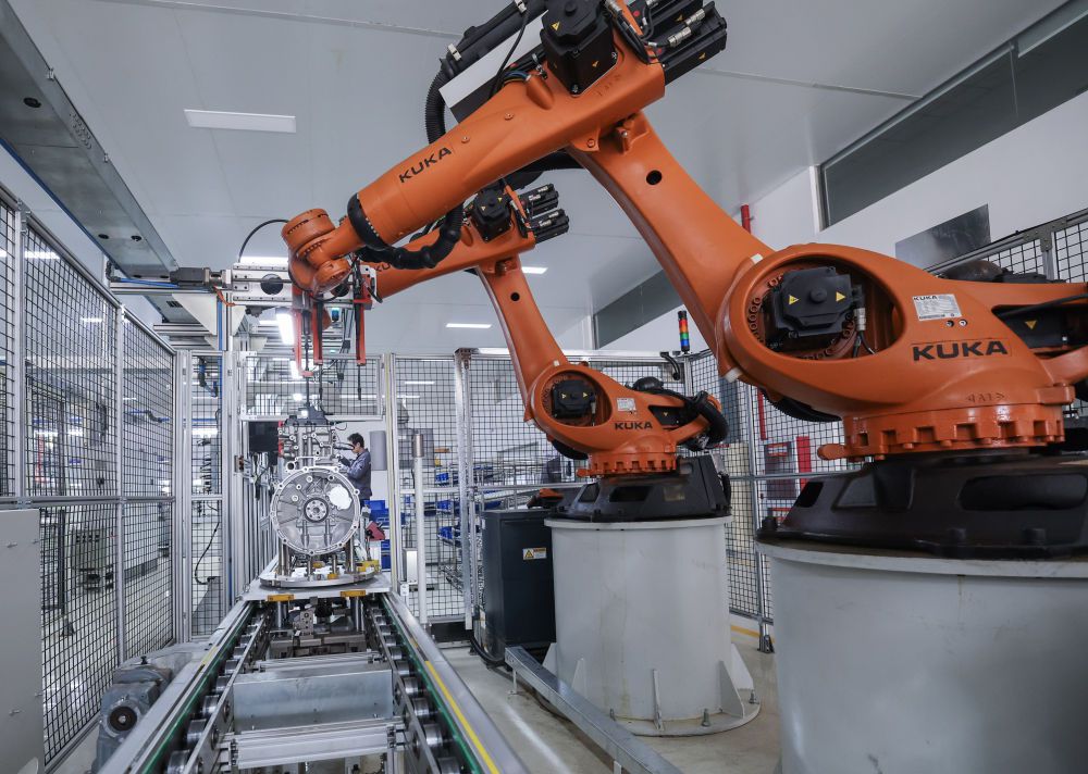 在位于金华市金东区一家公司的生产车间内,流水线上正在加工新能源汽车的智能增程器。新华社记者 徐昱 摄