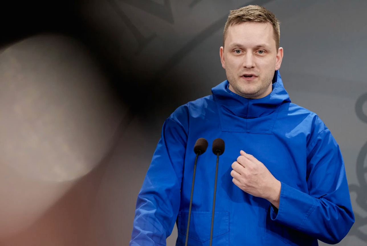 当地时间1月15日,格陵兰岛自治政府总理延斯-弗雷德里克·尼尔森在格陵兰岛新年庆祝活动上发表讲话。