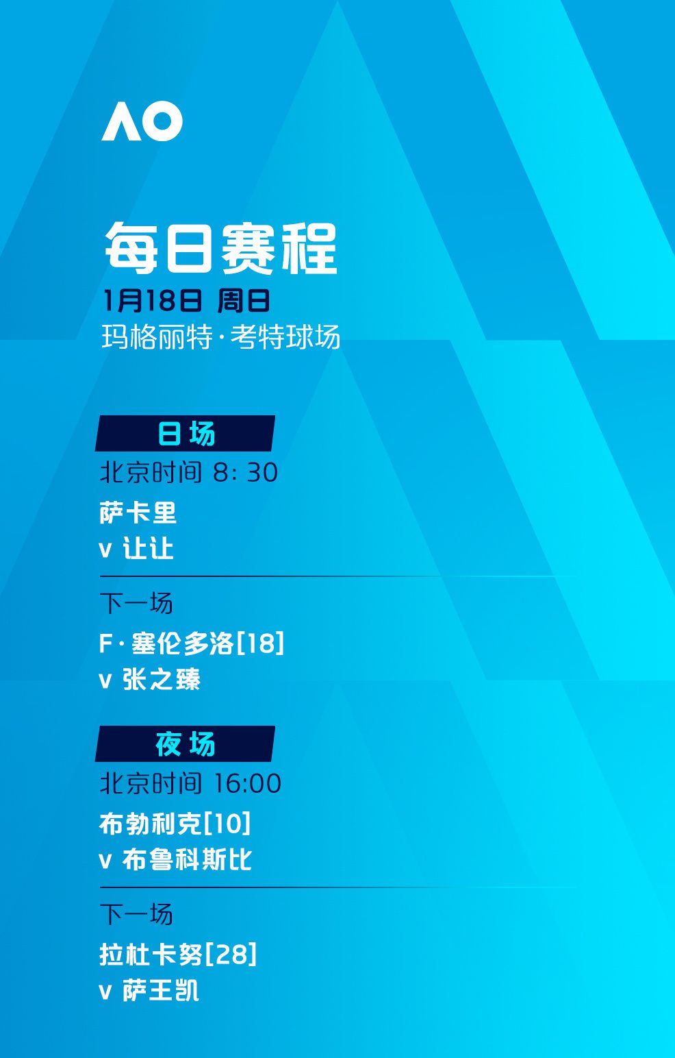 2026年澳大利亚网球公开赛正赛今日正式开打,赛事将于1月18日至2月1日在墨尔本公园举行。