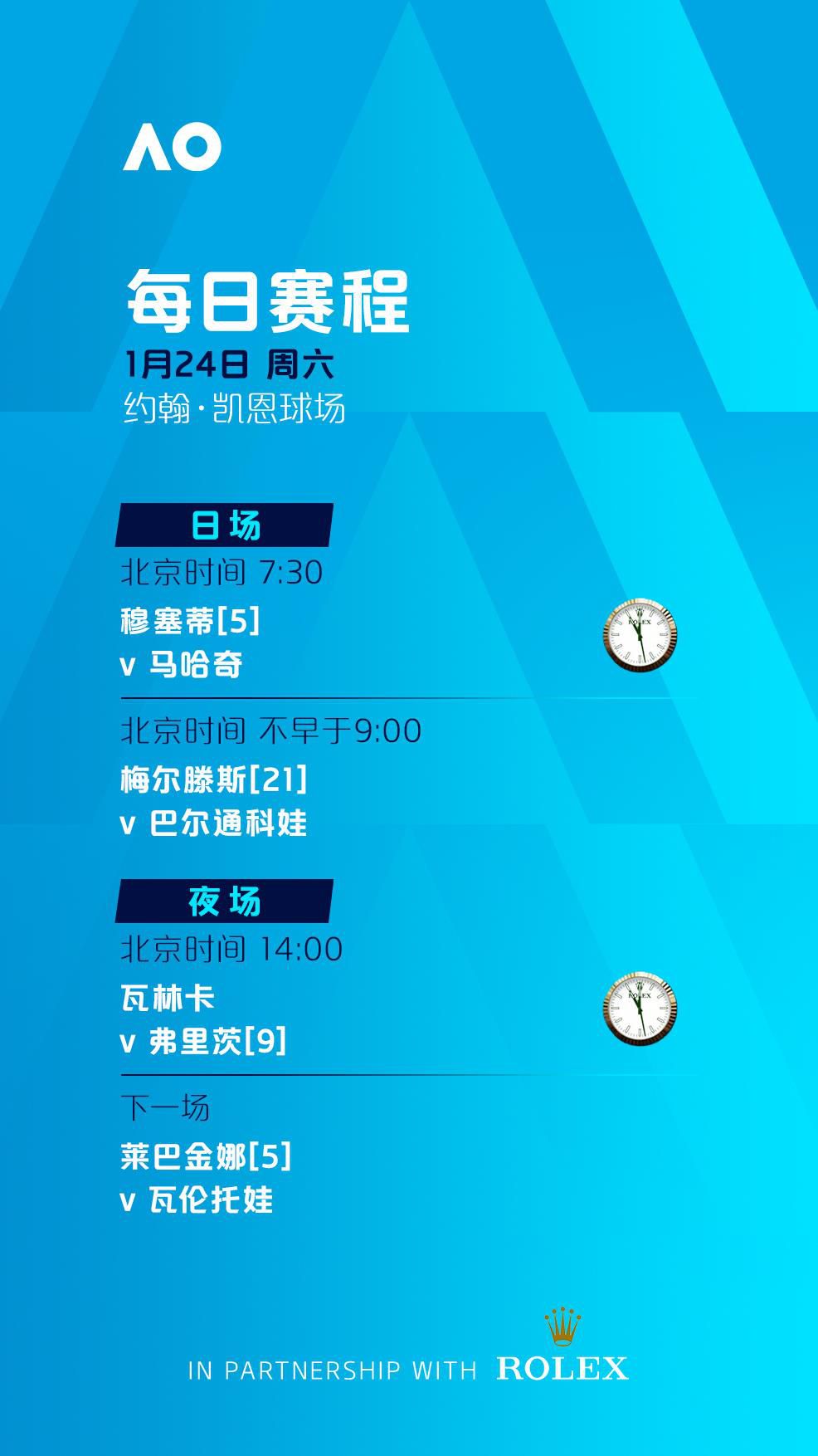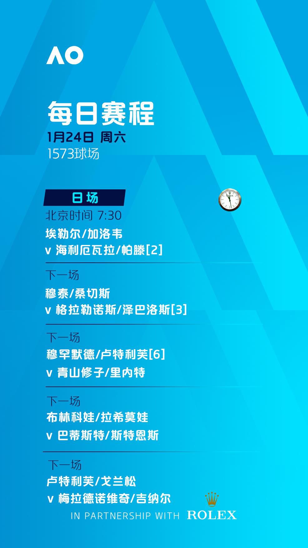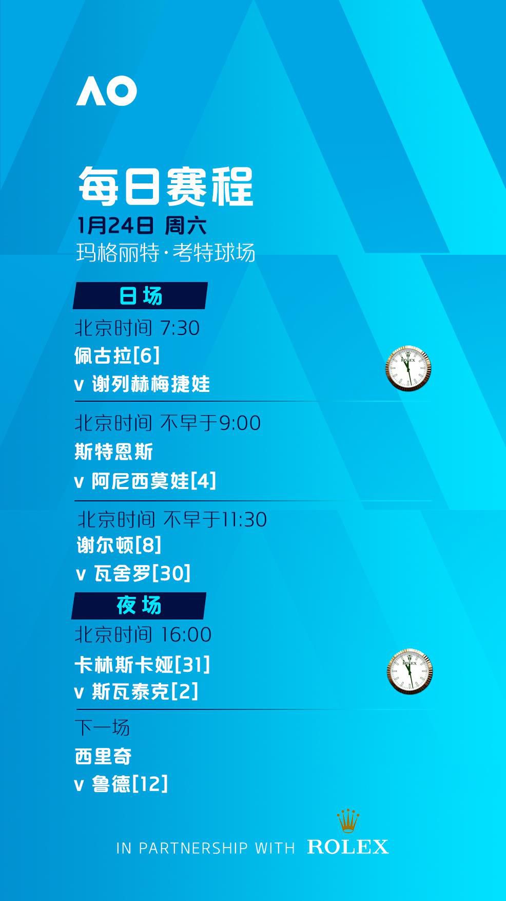 罗德·拉沃尔球场、玛格丽特·考特球场将从北京时间7:30开打,其余球场将分别从北京时间7:00和7:30开打。