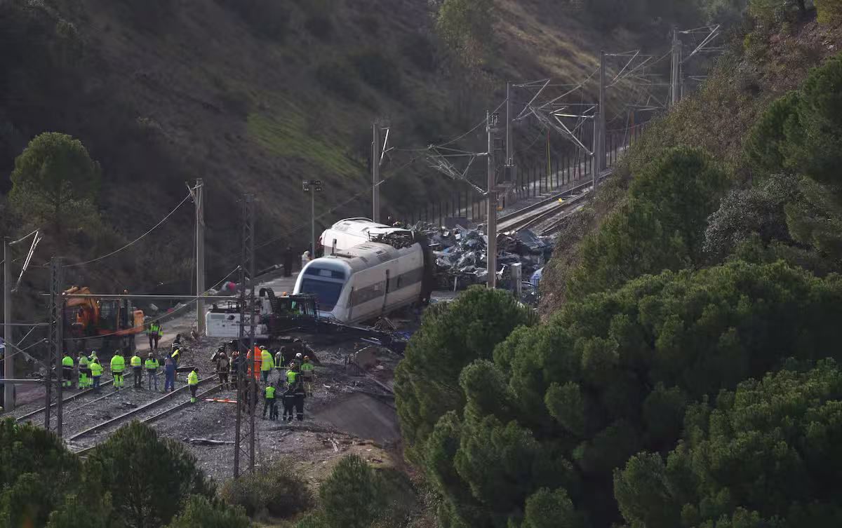 18日晚,一列载有300余名乘客、从马拉加开往西班牙首都马德里的高速列车在行驶过程中,在科尔多瓦省阿达穆斯市附近脱轨,列车随后侵入相邻线路,与一列由马德里开往西南部韦尔瓦省方向的高速列车相撞,导致后者脱轨。(总台记者 廖军华)