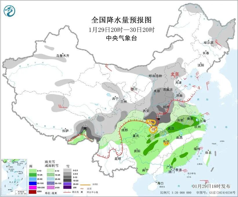 1、1月29日20时至30日20时,新疆伊犁河谷和沿天山一带地区、青海北部和东南部、西藏东部、黑龙江北部和东部、陕西大部、华北大部、江汉北部、江淮、江南西北部等地的部分地区有小雪或雨夹雪,其中西藏东部、陕西南部、河南西南部等地局地有大到暴雪。湖北西部、湖南中部局地有冻雨。西南地区东部、江南中北部、华南南部等地的部分地区有小到中雨。