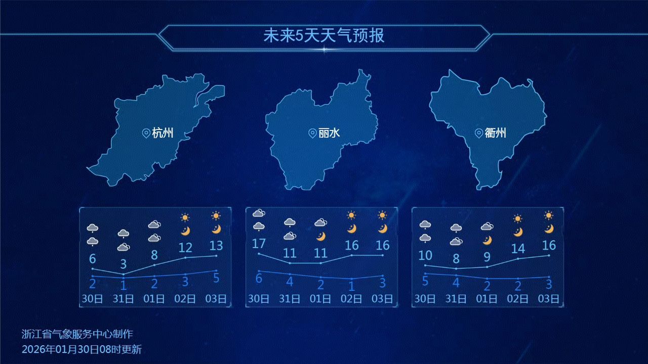 部分城市天气预报。图源:浙江天气