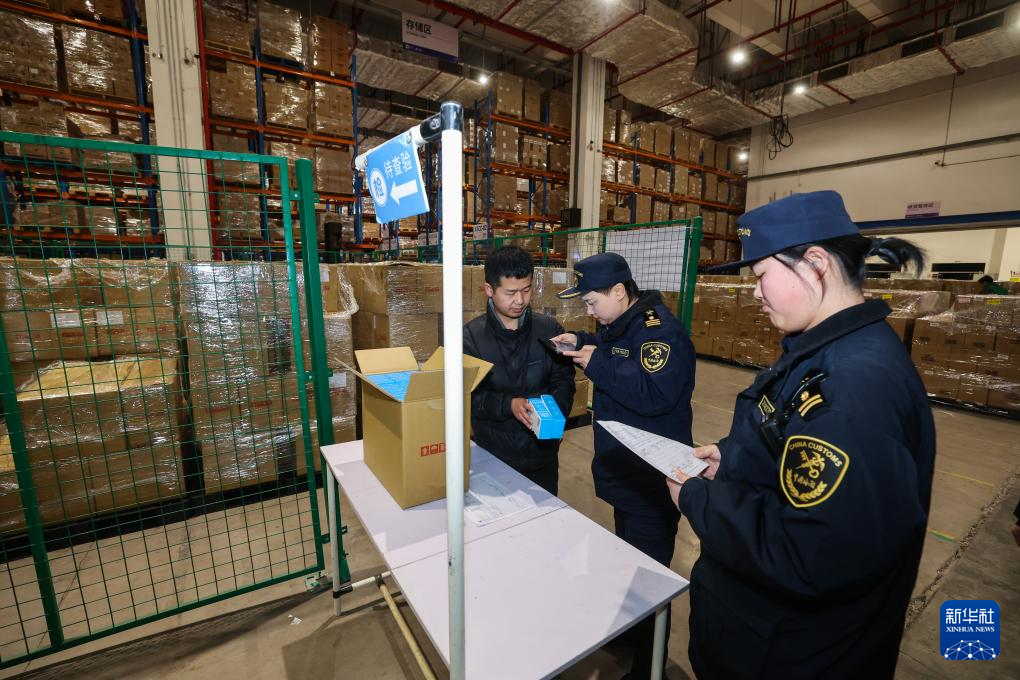 1月30日,义乌海关保税监管二科关员在义乌综保区跨境电商企业仓库对保税电商进口保健品进行入库查验。