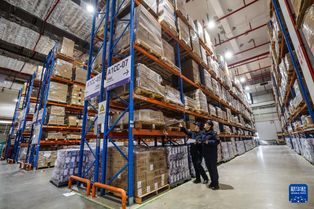 1月30日,义乌海关保税监管二科关员在义乌综保区跨境电商企业仓库巡库。