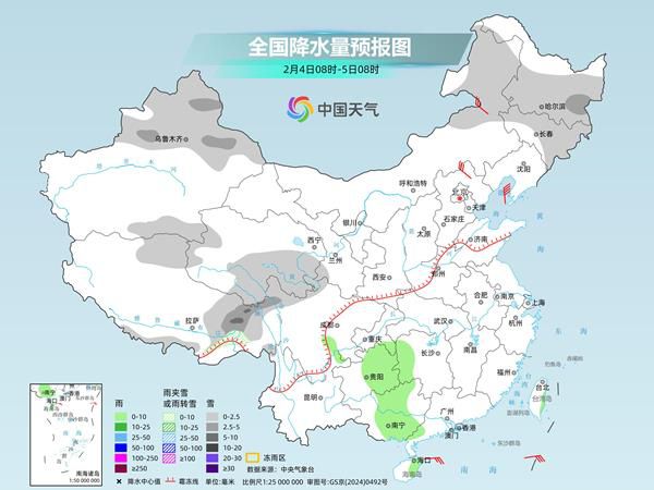 降水方面,未来三天,我国中东部地区降水比较稀少,雨雪天气将主要出现在新疆、西藏、青海、四川等地。