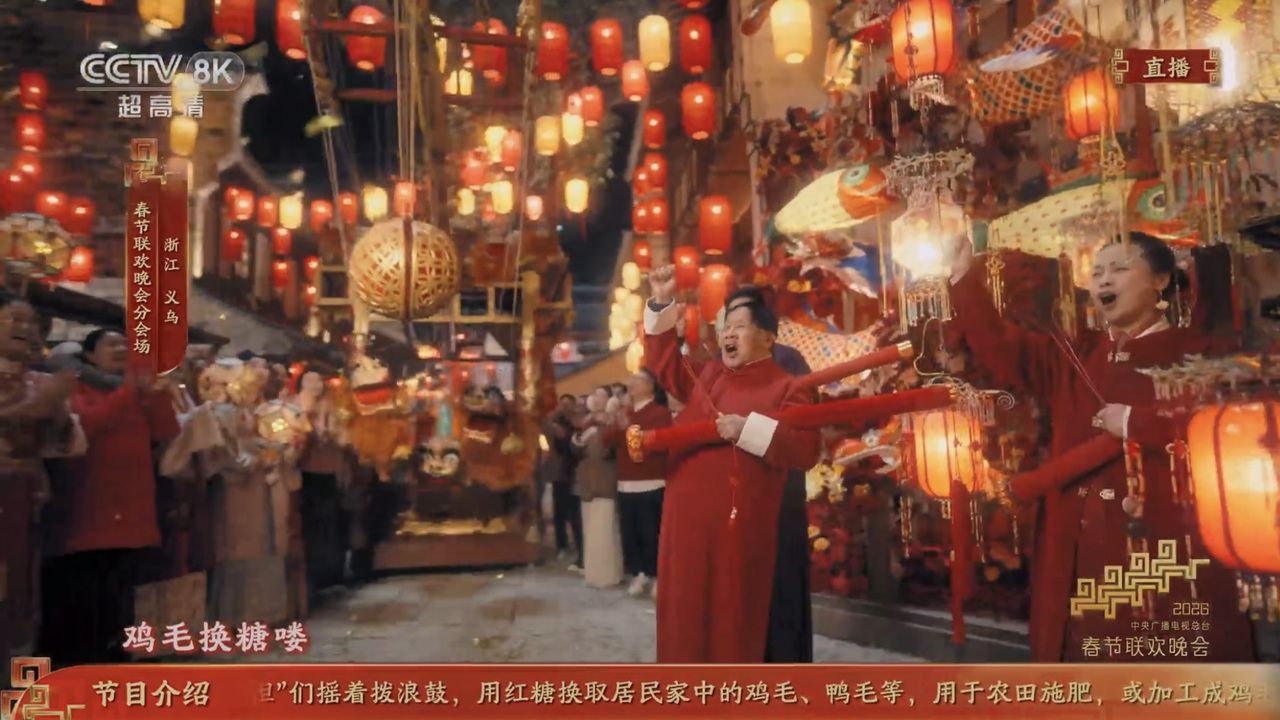 “我们通过极具地方特色的元素,营造出热热闹闹、收获满满的年味儿氛围。”总台春晚义乌分会场总导演刘欣特别提到,当80岁高龄的道情师傅用纯正乡音唱响“鸡毛换糖”,并感慨“这辈子没白唱”时,那份源自生活的质朴情感,为节目注入了无可替代的真实温度。