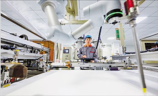 作为浙江省首批公布的96家“科技新小龙”企业之一,位于长兴的浙江奥氏芯材科技有限公司专注高选择性渗透长效分离膜材料的研发与产业化。图为工人操控全自动膜材料生产线。通讯员 谭云俸 摄