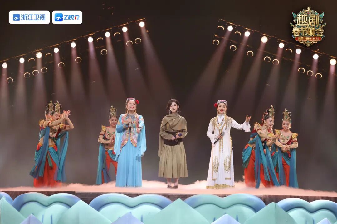 岁月流转,越剧的种子在新疆这块沃土生生不息、代代传承,更结出了石榴籽般紧紧相依的硕果。如今,越剧的旋律回荡在新疆的校园课堂里。而在今年越剧春晚的舞台上,这份情谊更显鲜活!不仅有来自新疆阿克苏地区塔里木歌舞团的舞蹈演员和歌手们挥舞水袖、献唱越剧《天女散花》,还有来自新疆阿克苏地区阿瓦提县鲁迅小学的四位小朋友扮演天女。两代越剧人隔台相望,是老人眼中惊喜、欣慰的泪光,也是四位“小天女”纯净的悠悠越音,表达着她们心中对越剧的喜爱之情。