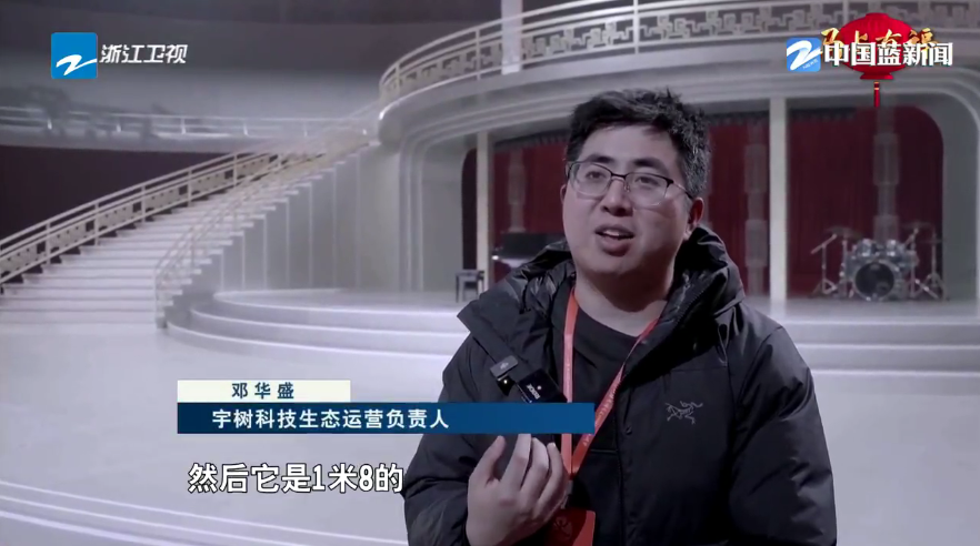 宇树科技生态运营负责人 邓华盛:全尺寸人形H2,然后它是1米8的非常完美比例身材的机器人,然后但是它的诞生是在25年的10月份,只有三个月的时间,我们要完成设计好的动作,这本身是非常难的。