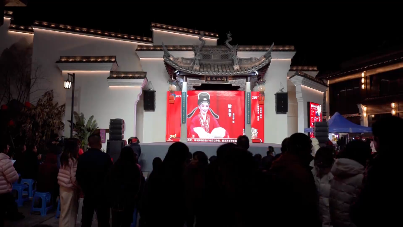晚上7点多,越剧之乡嵊州剡湖街道东前街古戏台前,越剧迷们从四面八方赶来,守着屏幕收看一年一度的越剧春晚。