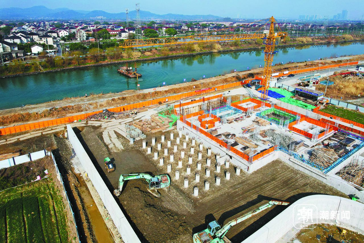 2月19日,东苕溪(德清段)防洪能力提升工程新城南闸站,施工人员抢抓兴修水利黄金期,同步推进堤防加固、土方填筑等作业。记者 吕之遥 共享联盟·德清白羽 摄