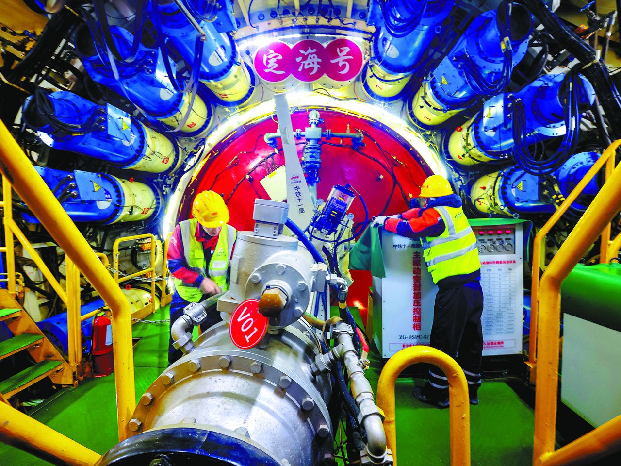 2月18日,甬舟铁路金塘海底隧道,“定海号”盾构机班组在海平面下70米作业。 拍友 姚峰 周俊 陈星 摄