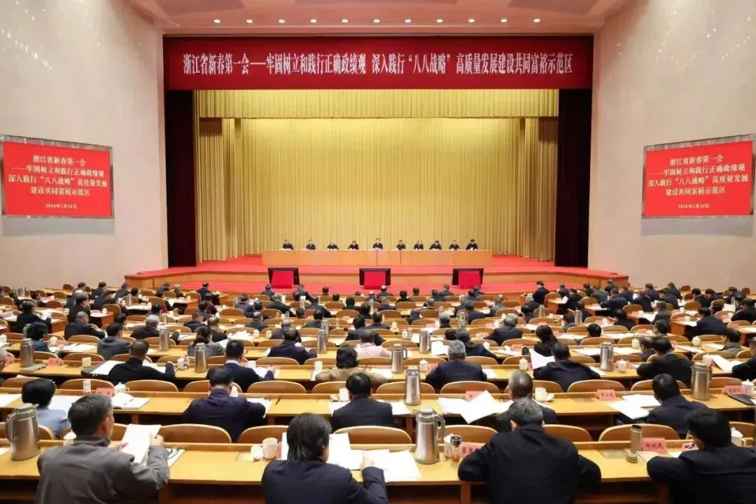 一年春作首,万事干为先。2月24日是春节后首个工作日,省委围绕牢固树立和践行正确政绩观,深入践行“八八战略”,高质量发展建设共同富裕示范区,召开浙江省新春第一会,吹响实干争先的冲锋号,打响拼搏奋进的发令枪。省委书记王浩在会上强调,要深入学习贯彻习近平总书记重要讲话重要指示批示精神,深入践行“八八战略”,聚焦聚力落实总书记“4+1”重要要求和省委“132”总体工作部署,牢牢扭住高质量发展建设共同富裕示范区这一核心任务,围绕“六个重大突破”,紧扣“八个聚焦聚力”,深化“十项重大工程”,大力弘扬“六干”作风,奋力干出“十五五”开局之年的新气象新成效,为取得“决定性”进展、率先呈现“生动图景”提供有力支撑,为全国大局多作贡献。