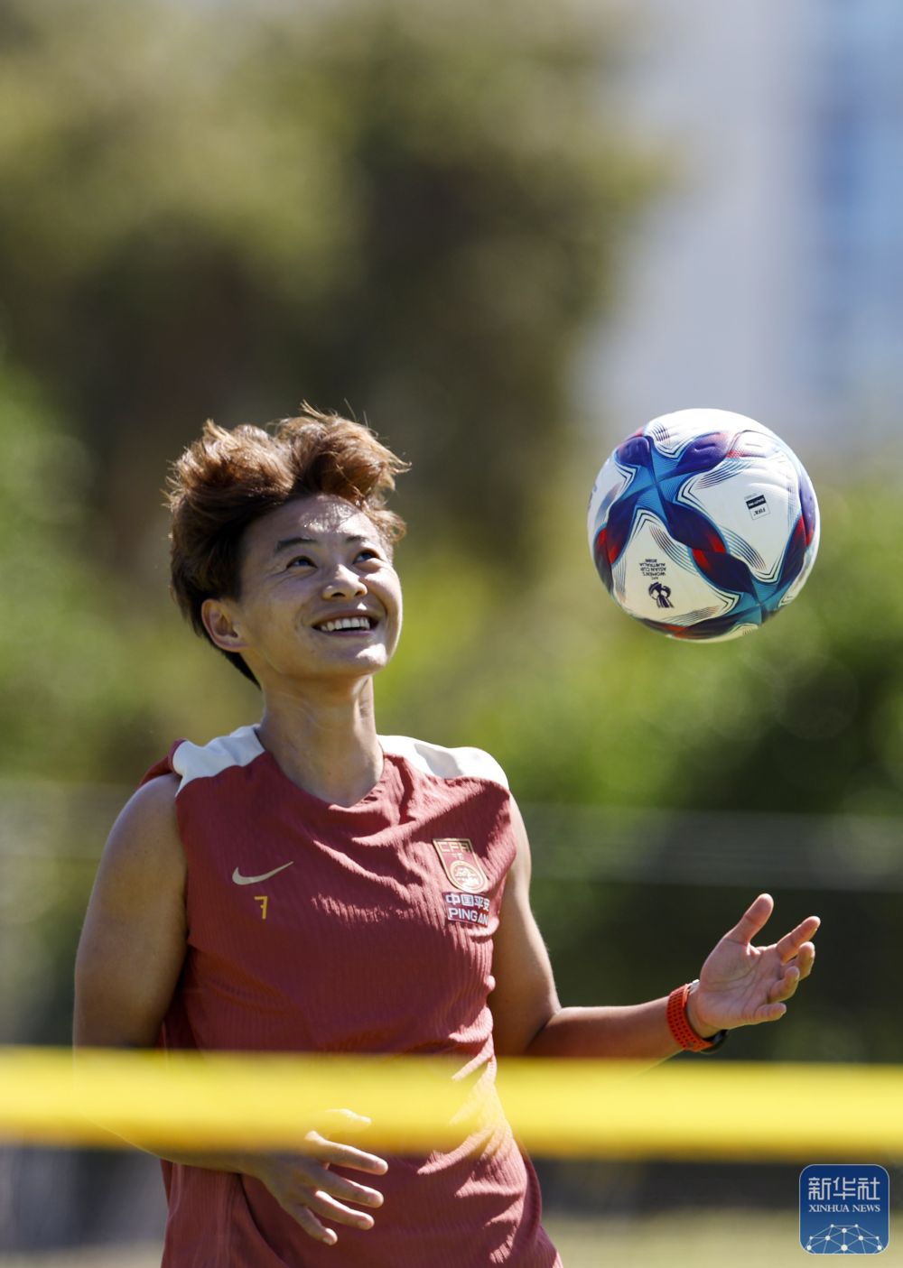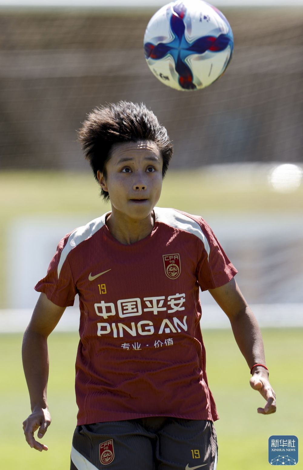 ↑ 中国女足队员王霜在训练中。 新华社记者 马平 摄