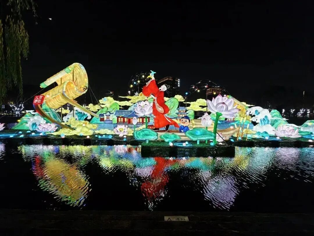 水陆双线赏灯,是今年灯会最出圈的特色:白天可以乘坐小火车,穿梭在盛放的梅林与灯海之间,赴一场江南的赏梅雅事;入夜后乘上专属花灯摇橹船,顺着湿地河道缓缓穿行,看两岸灯影映在水面,沉浸式体验“日赏梅花夜观灯”的双倍快乐。需要提醒您的是市民游客可免费进入公共赏灯区域,但部分体验项目需预约购票。