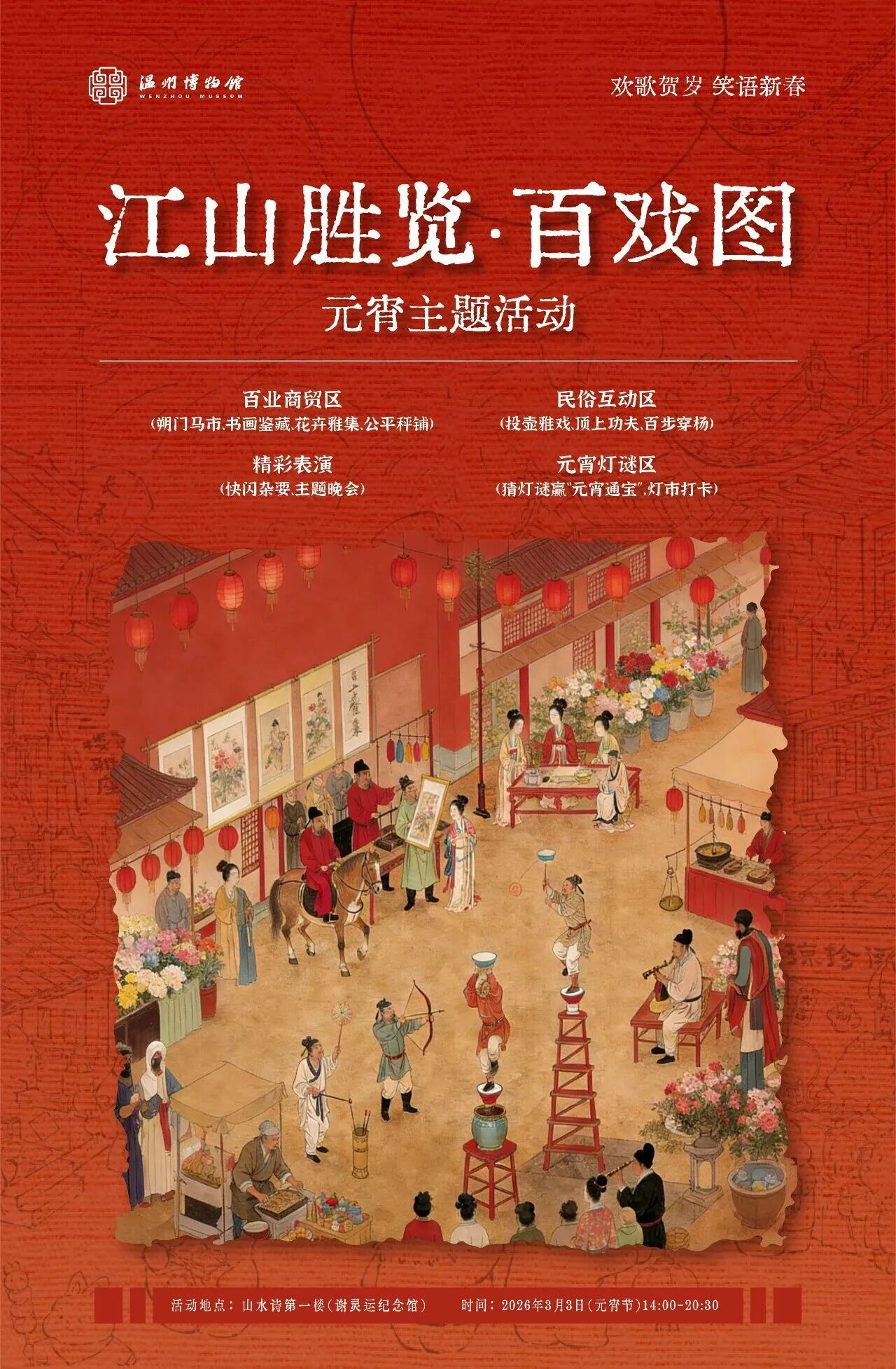 元宵节,在博物院里也能过得很有趣。谢灵运纪念馆诚邀您参加“江山胜览·百戏图”主题活动,当一回元代古人~