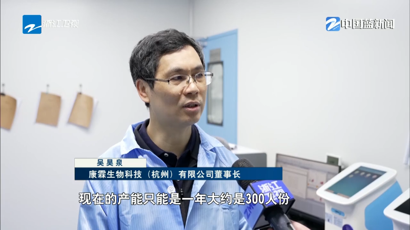 康霖生物科技(杭州)有限公司董事长 吴昊泉:现在的产能只能是一年大约是300人份,我们现在想给它扩到1000人份以上。