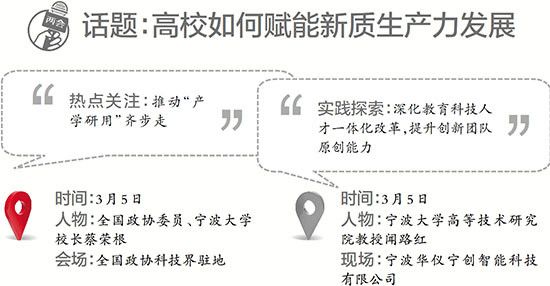 “面对加快培育新质生产力的时代课题,高校如何超越传统的人才输出地与科研供给方角色,真正成为与地方发展风险共担、利益共享、目标共进的‘最佳合伙人’?”3月5日下午,在全国政协科技界的小组讨论中,全国政协委员、宁波大学校长蔡荣根抛出的一个问题,引发了大家的讨论。