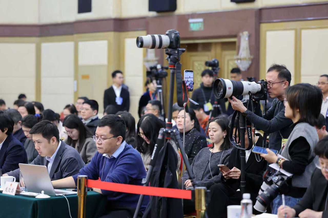 人民日报、新华社、中央广播电视总台、经济日报、法治日报、凤凰卫视、联合早报、日本共同社、华尔街日报等89家中外媒体到会采访。潮新闻记者 李震宇 摄