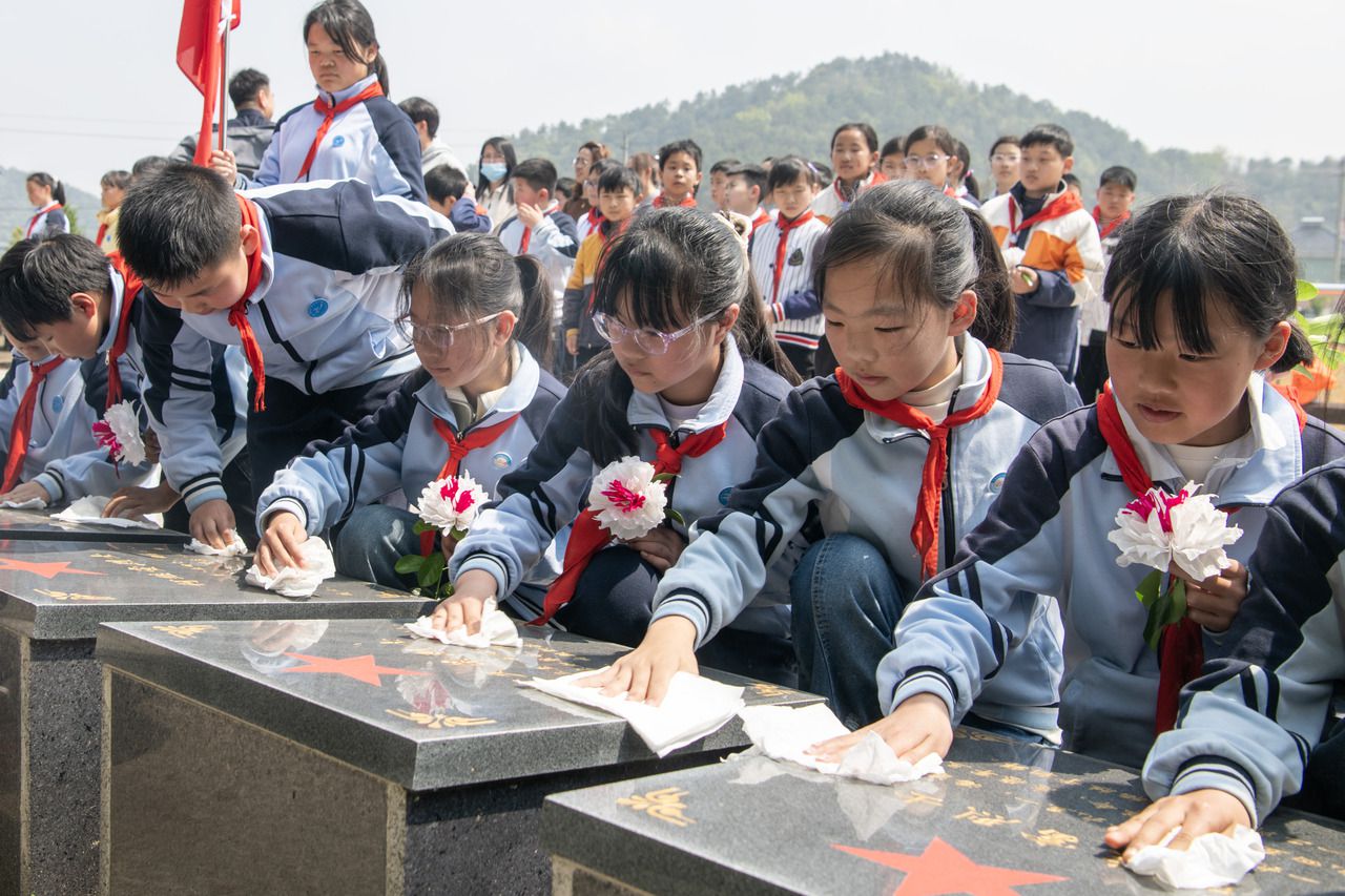 2026年4月1日,余姚市黄家埠镇回龙小学少先队员走进黄家埠镇烈士陵园,通过敬献鲜花、默哀、敬队礼等方式,缅怀革命先烈,传承红色基因。拍友 张辉