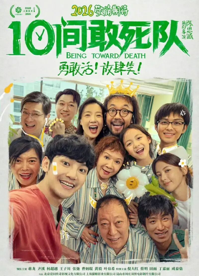 陈思诚首次挑战“生命喜剧”题材的 《10间敢死队》由蒋龙、齐溪、杨超越、王子川、张弛、曹炳琨等领衔主演,倪大红、蔡明、田雨、丁嘉丽、成泰燊特别主演,六兽、艾丽娅、童漠男、魏翔、包贝尔、孙艺洲等一众实力演员友情出演,被戏称为“喜剧全家桶”。该片已入围第十六届北京国际电影节主竞赛单元“天坛奖”。