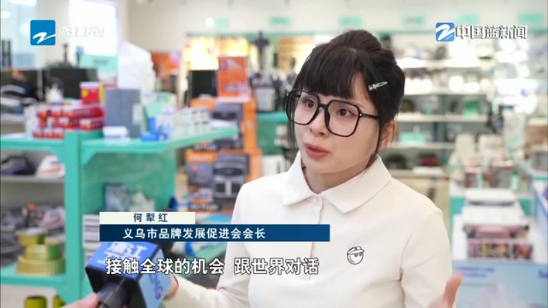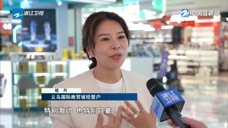 义乌国际商贸城经营户 楼 丹:特别激动,也特别自豪,我觉得我们义乌的经营户就是在敢闯敢试敢拼的一个时代去创出来的,现在我们是到出海卖品牌,我们要把我们的品牌带到全球去。