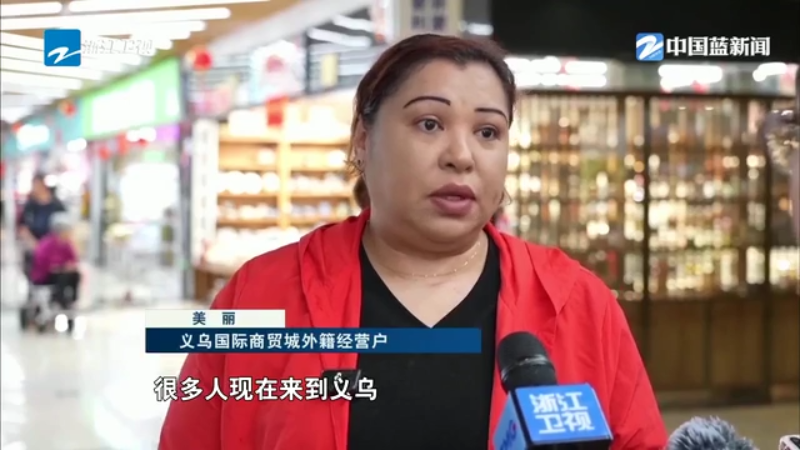 义乌国际商贸城外籍经营户 美 丽:很多人现在来到义乌,玩啊,买货啊, 订货都是来到义乌的,很多的现在,和以前不一样的,越来越好不是嘛。