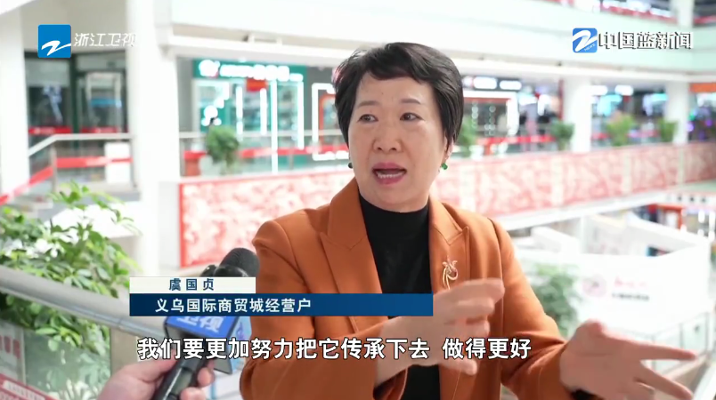 义乌国际商贸城经营户虞国贞说:“总书记鼓励之下,我们要更加努力把它传承下去,做得更好,义乌的市场更创辉煌。”