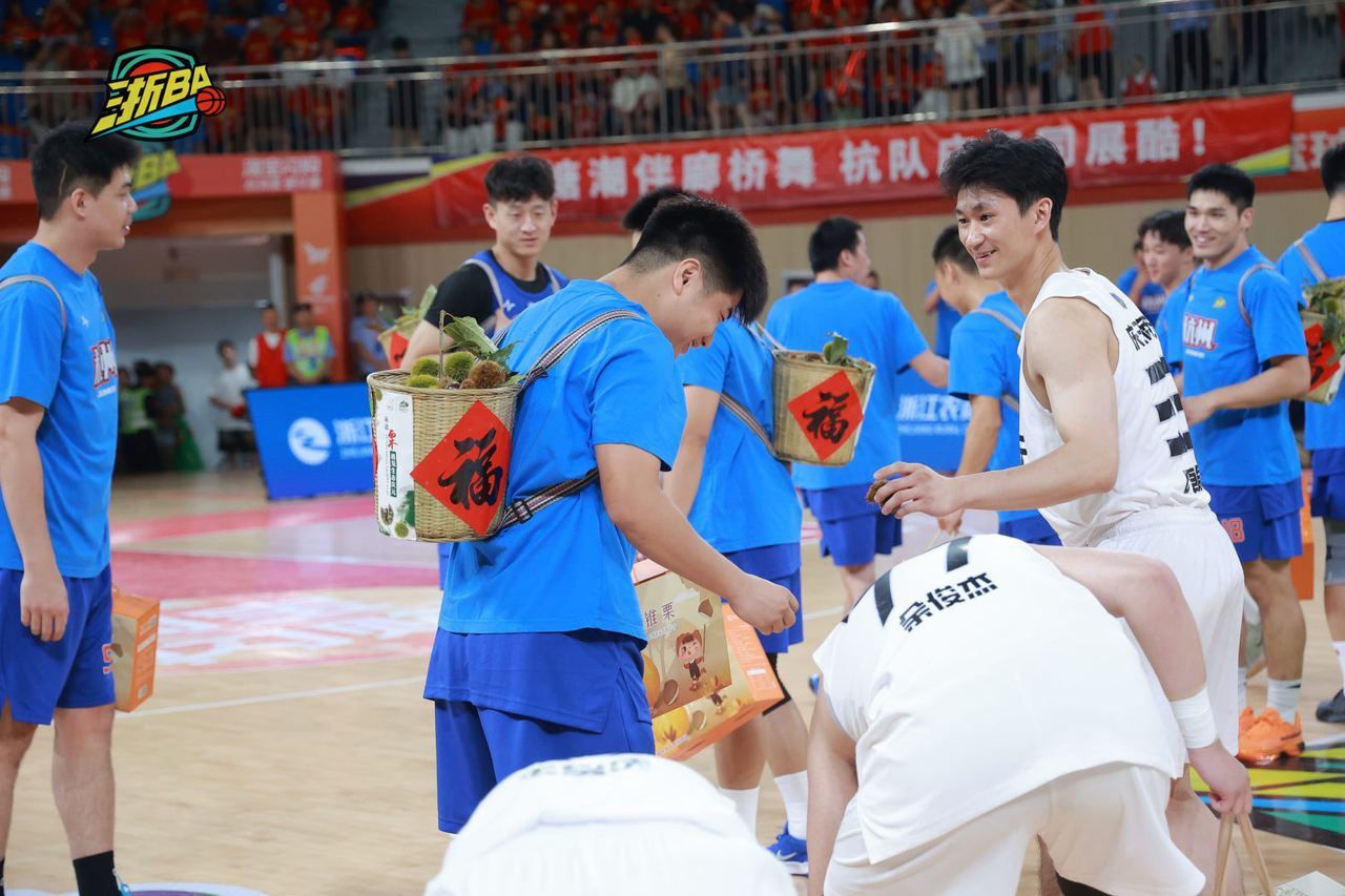 庆元球员将“秋天的第一筐锥栗”赠予客队球员 图片由庆元县融媒体中心提供
