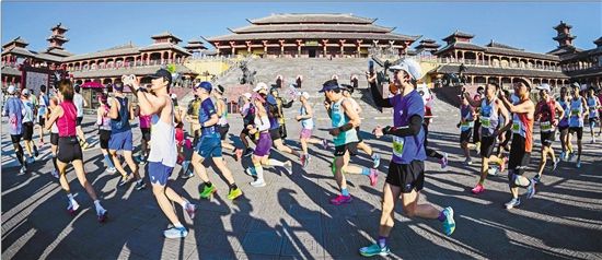 横店的底气则来自“影视+赛事”的独特资源。秦王宫、清明上河图、明清宫苑……10余个大型景区、130多座专业摄影棚,平时拍戏,赛时改造成赛场。横店马拉松的选手们可以 “跑进电影”——赛道穿过影视基地,旁边是“古代士兵”喊加油,那种穿越感别有情趣。