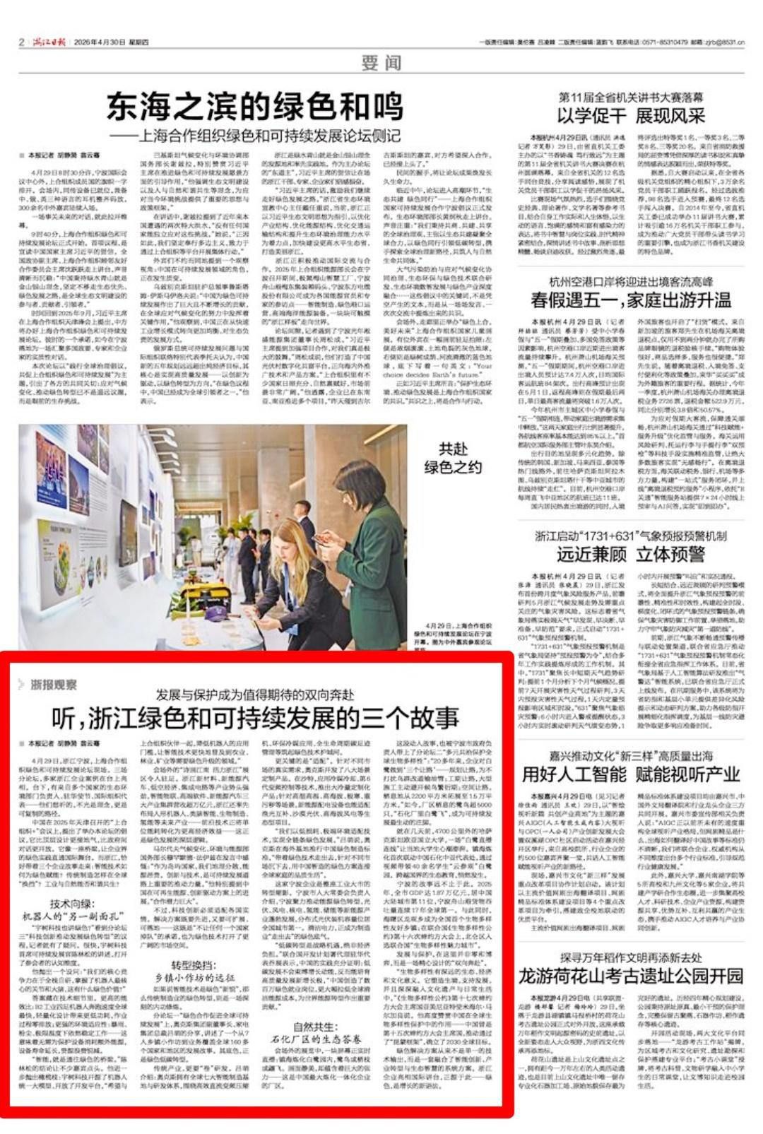 绿色解决方案从来不是单一的技术输出,而是一套融合了智能创新、产业转型与生态智慧的系统方案。浙江企业亮相国际讲台,正源于此——绿色,是增长的新语法。